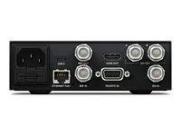 HyperDeck Studio Mini has 6G-SDI connections that support all SD, HD, and Ultra HD formats up to 2160p30. SDI input and two SDI outputs that can be used as "Fill" and "Key." The HDMI output makes HyperDeck Studio Mini perfect for connecting to large-screen TVs, projectors, and digital signage. For large digital signs, there is a reference input and a reference generator with a reference output that allows you to synchronize multiple HyperDecks for group playback.